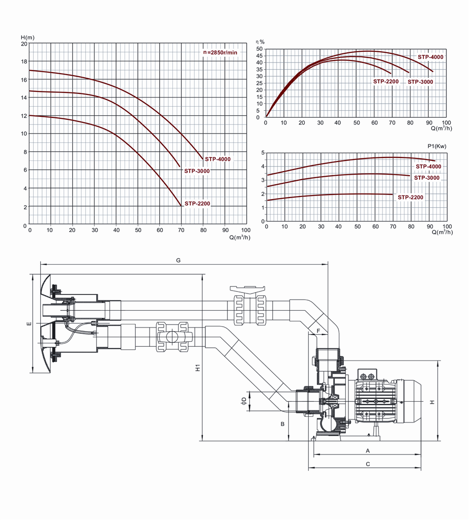 Pompa przeciwprądu 75 mm KW 400V typ STP-2200 Typ: STP-2200